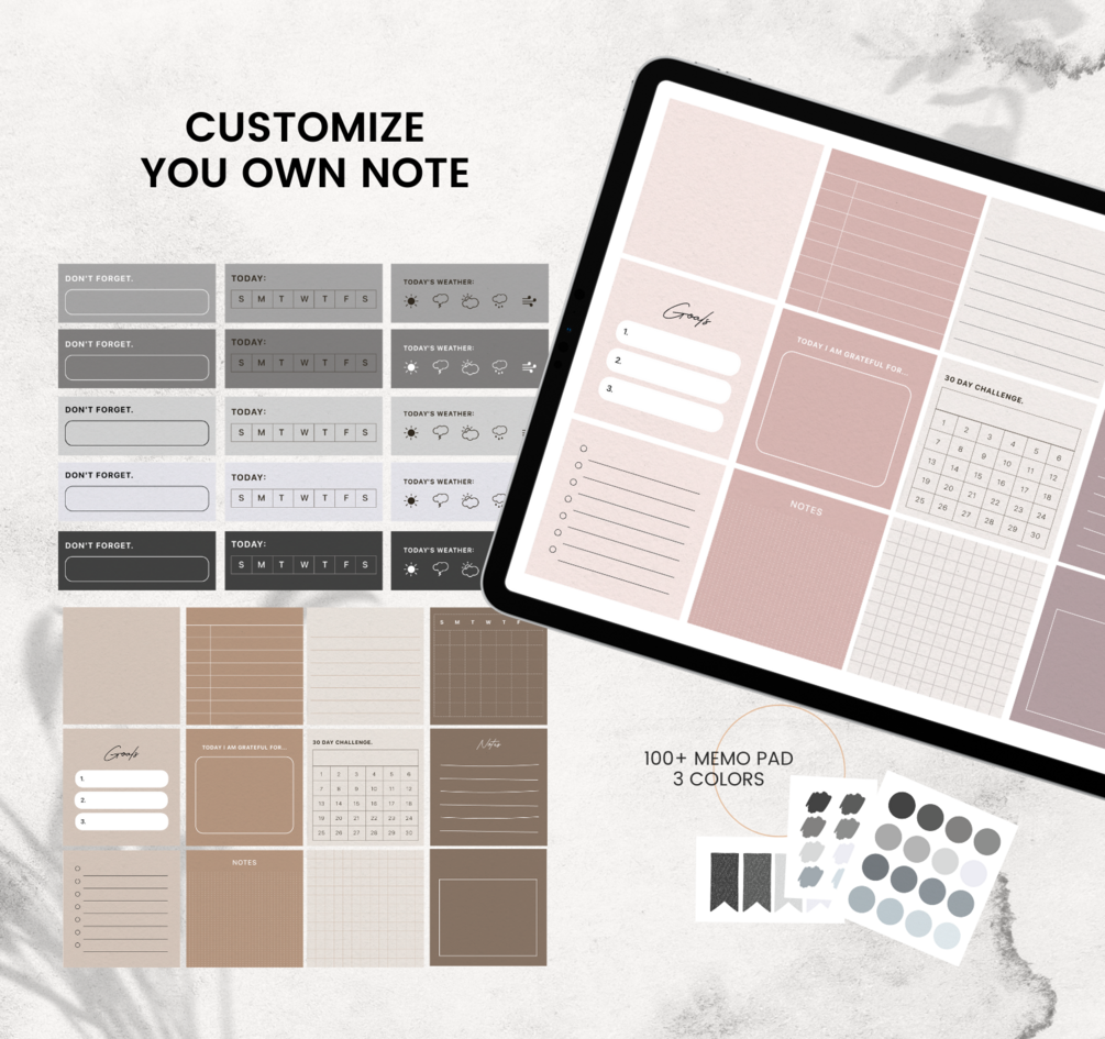 Digital Planner, minimal design + FREE Memo Pad and cover!